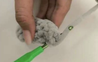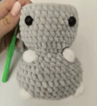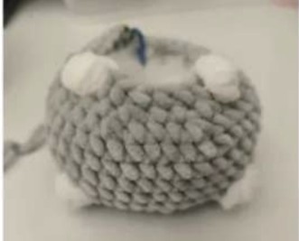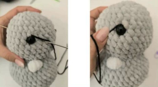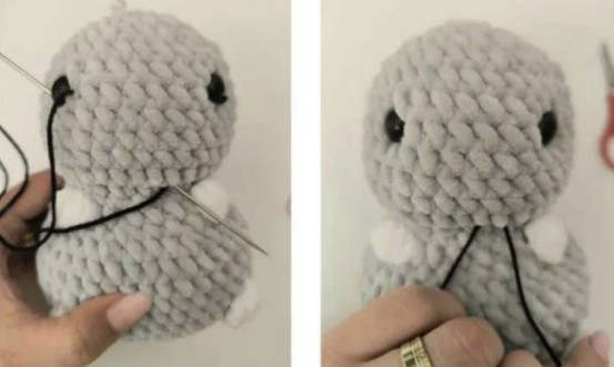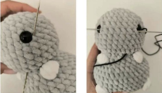 Mettere gli occhi tra il giro 21 e il giro 22, distanziati di 6 maglie. Riempire la testa.