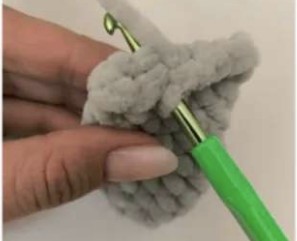 Chiudere l’orecchio con 3 mb. Piegare e alla base dell’orecchio lavorare 2 mb.