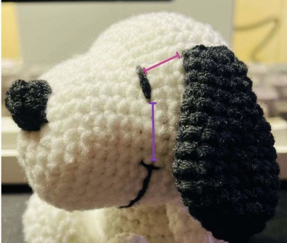 • Cucire il naso al centro del viso, tra i Giri 2 e 4 della testa.
