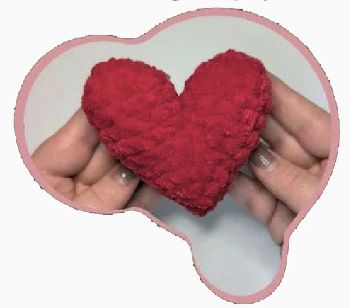 Utilizzando le code di filo uscite dalle braccia, fissare il cuore in modo che sia ben saldo tra le braccia. Regolare la posizione affinché il cuore sembri tenuto naturalmente contro il corpo. Fermare tutte le code di filo e nascondere le estremità.