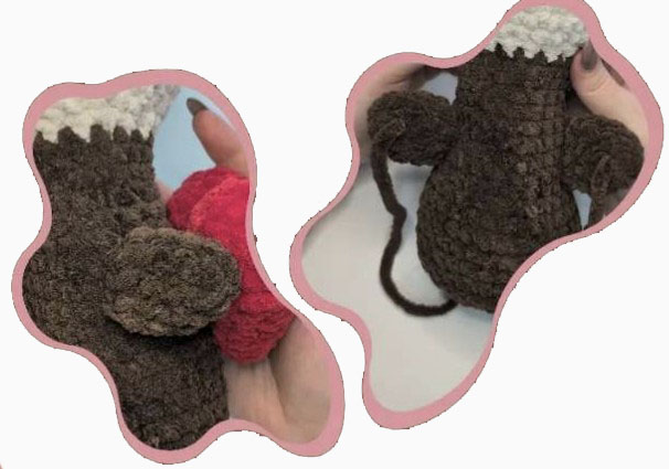 Attaccare la coda tra i giri 28-32, perfettamente centrata sulla parte posteriore del corpo.