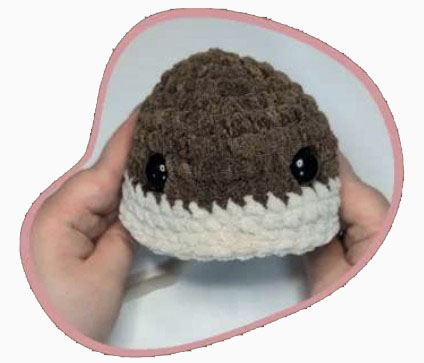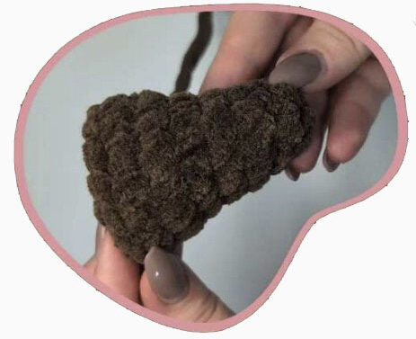 Giro 1: cat 7 → saltare la prima cat, 1 mb nelle restanti 5 cat, aum, continuare sull’altro lato della catenella → 5 mb, mbss, Chiudere il lavoro e lasciare una coda lunga per cucire.