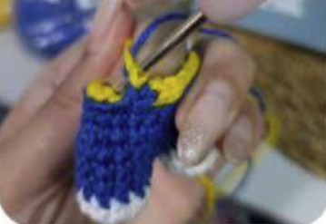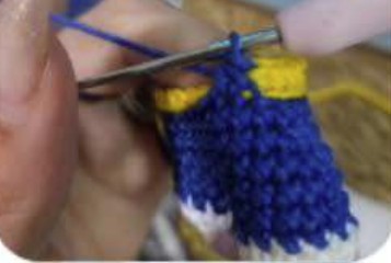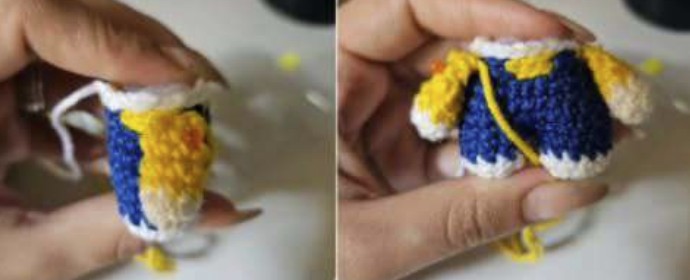 Cucire sui lati del corpo al giro 11, sulla parte gialla.