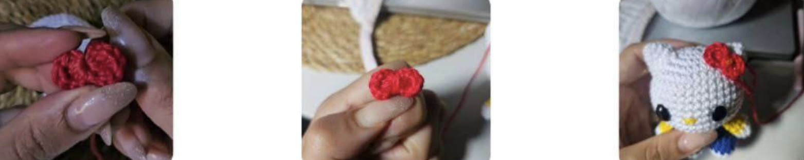 Posizionare il fiocco sulla parte anteriore dell’orecchio destro e cucirlo in posizione.