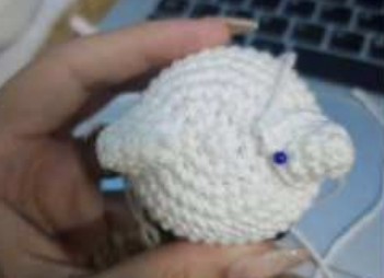 Posizionare e cucire sui giri da 3 a 7 sui lati della testa.