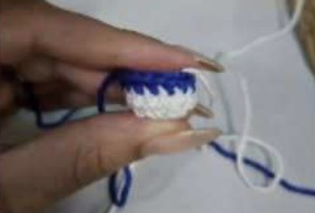 Posizionare gli occhi tra i giri 10 e 11 con una distanza di 8maglia (lasciando un aumento del giro 10 al centro).