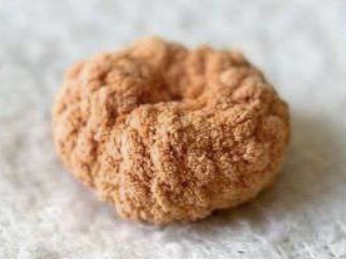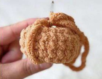 Piegare a metà e lavorare attraverso entrambe le metà del giro. Non imbottire, fare 2mb sulla parte superiore poi Chiudere il lavoro & lasciare un lungo filo per cucire in seguito.