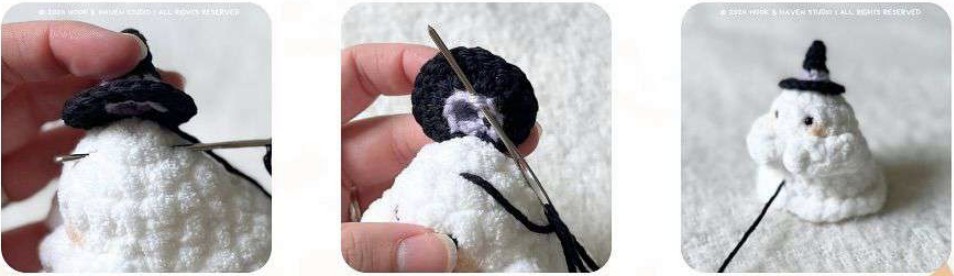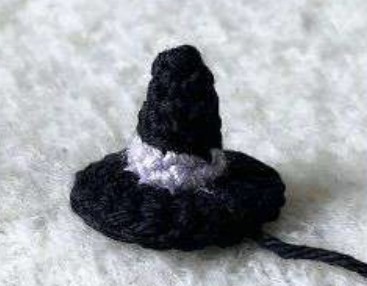 Quando sembra sicuro, Chiudere il lavoro come preferisci, ma personalmente intreccio il filo verso la parte inferiore del cappello da strega e lì Chiudere il lavoro passando il filo attraverso il filato worsted. Mi sembra che in questo modo tenga un po’ meglio!