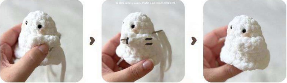 La realizzazione di questi tre pezzi è inclusa nello schema di maglia qui sotto. Può sembrare uno schema amigurumi noioso ma il pupazzo appare davvero elegante. Inoltre manca ancora molto tempo a Halloween. Secondo me dovreste iniziare subito a realizzare questo pupazzo.