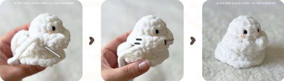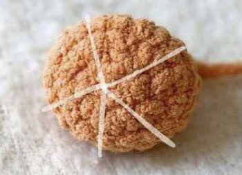 Chiudere il lavoro & lasciare un lungo filo per cucire. Completare l’imbottitura e cucire l’apertura.